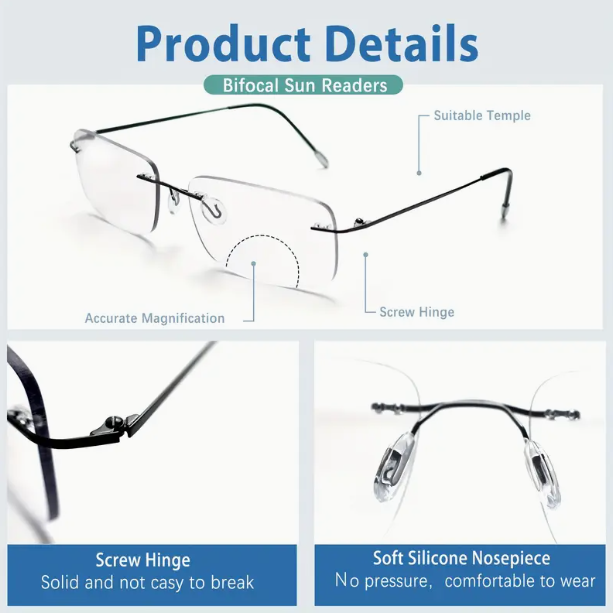 Titanium material unbreakable, lens coating,anti-reflection,flexible metal spring hinge,rubber leg, skin friendly.