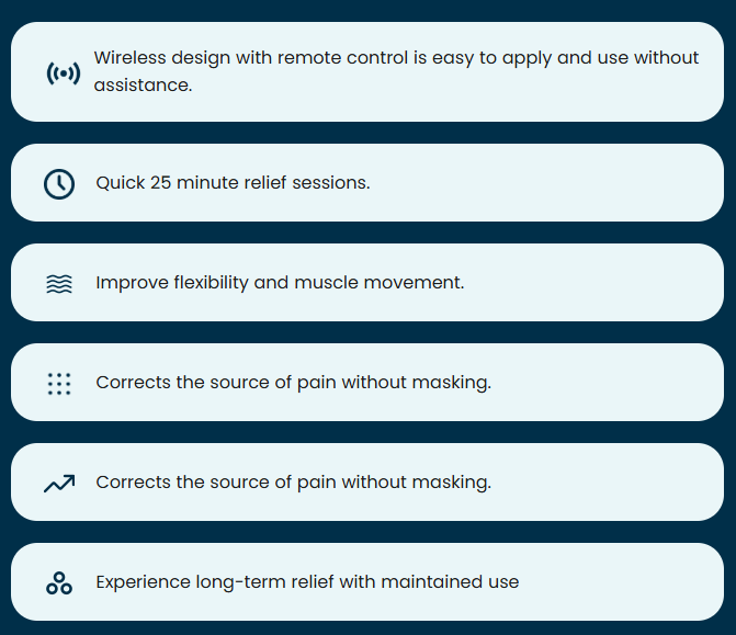 Pain is diminished in as little as 2 weeks. After 12 weeks, use your device on maintenance mode for continued relief.