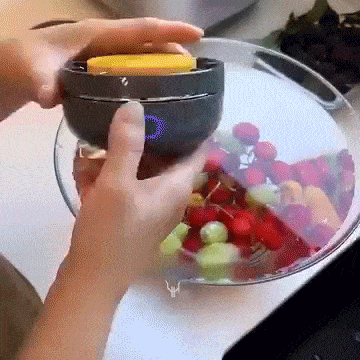 COMPACT, EASY TO USE & HYGIENIC- User-friendly design fits any kitchen. Simply place in water, press the button and the washer goes to work, no scrubbing or soaking required.